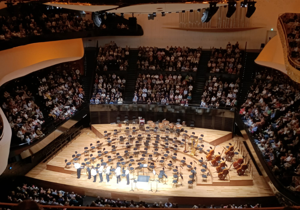 Puis est arrivée l’heure de la répétition sur la scène de la philharmonie ! Le groupe prend alors la mesure de la salle de 2500 sièges et commence à exprimer un peu d’appréhension !