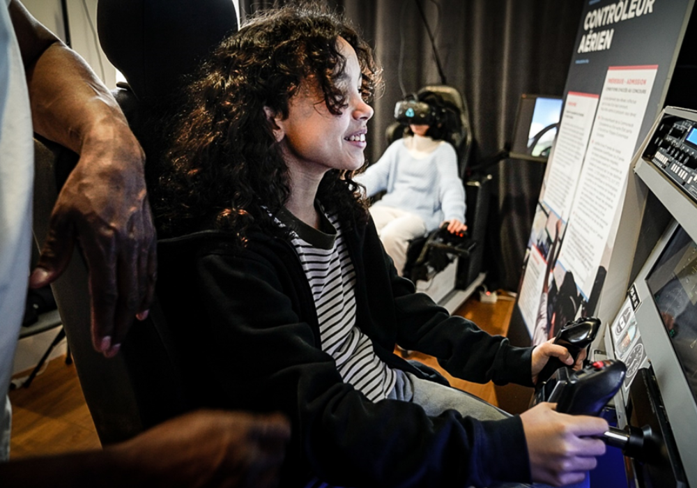 Grâce à nos partenaires DécouvAirte et la Fédération Française de Vol en Planeur (FFVP), les adolescent.es et les jeunes ont pu prendre place dans des simulateurs de vol couplés à de la réalité virtuelle. « J’aimerais que tous les jeunes trouvent leur voie, celle qui va leur correspondre et les passionner. Dans tous les domaines d’activité, il devrait exister des ateliers de découverte. Je dis aux jeunes qu’en travaillant, ils sont capables de relever tous les défis qu’ils rencontreront sur leur chemin ! », témoigne Jean-Michel Capron, fondateur de l’association DécouvAIRte.