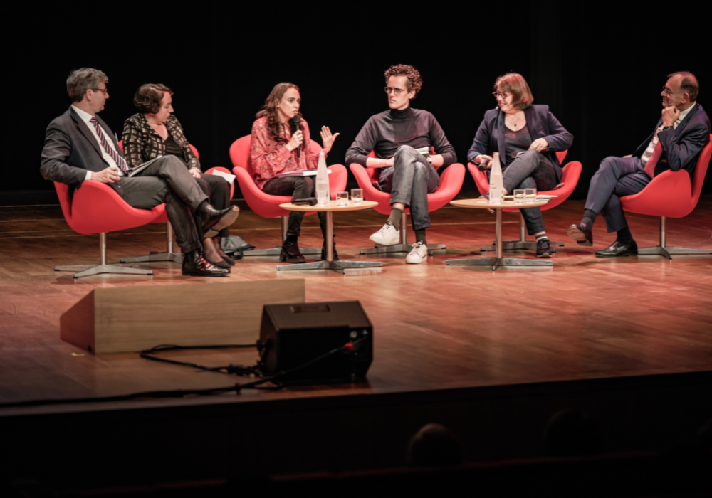 - Une politique jeunesse forte en France, un horizon impossible ? avec la présence, de gauche à droite : Christophe Castell, sous-directeur des politiques interministérielles de jeunesse et de vie associative et de vie de la DJEPVA, Christelle Thouvenin, directrice des études de la Fabrique Spinoza, Nadia Bellaoui, présidente de l’Agence du service civique, Dylan Buffington, expert associé à la Fondation Jean-Jaurès et auteur de l’étude « France 2040 », Corinne Bord, vice-Présidente de la Fédération Léo Lagrange et Yves Blein, le président.