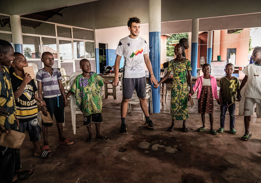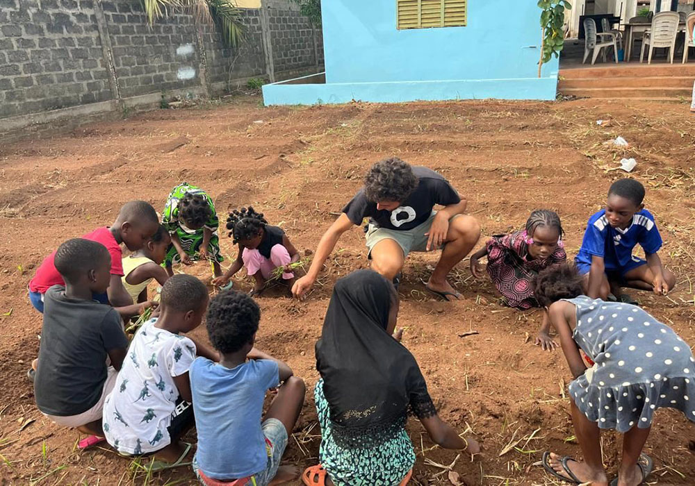 Aurélien en mission à Porto-Novo durant une activité jardinage.