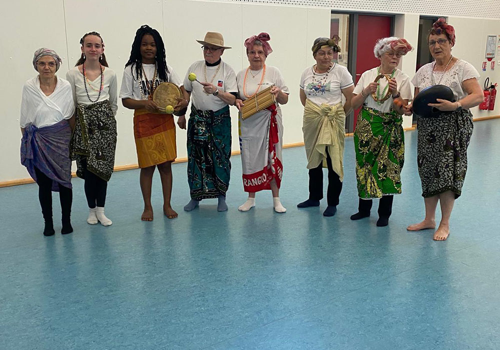 Noëlie lors d’un atelier de danses traditionnelles béninoises au sein de la Mission Jeunesses Aînés de Beaucouzé.